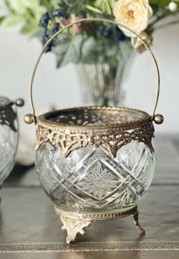 クラシカルで高級感ある真鍮とガラスのバスケットです。