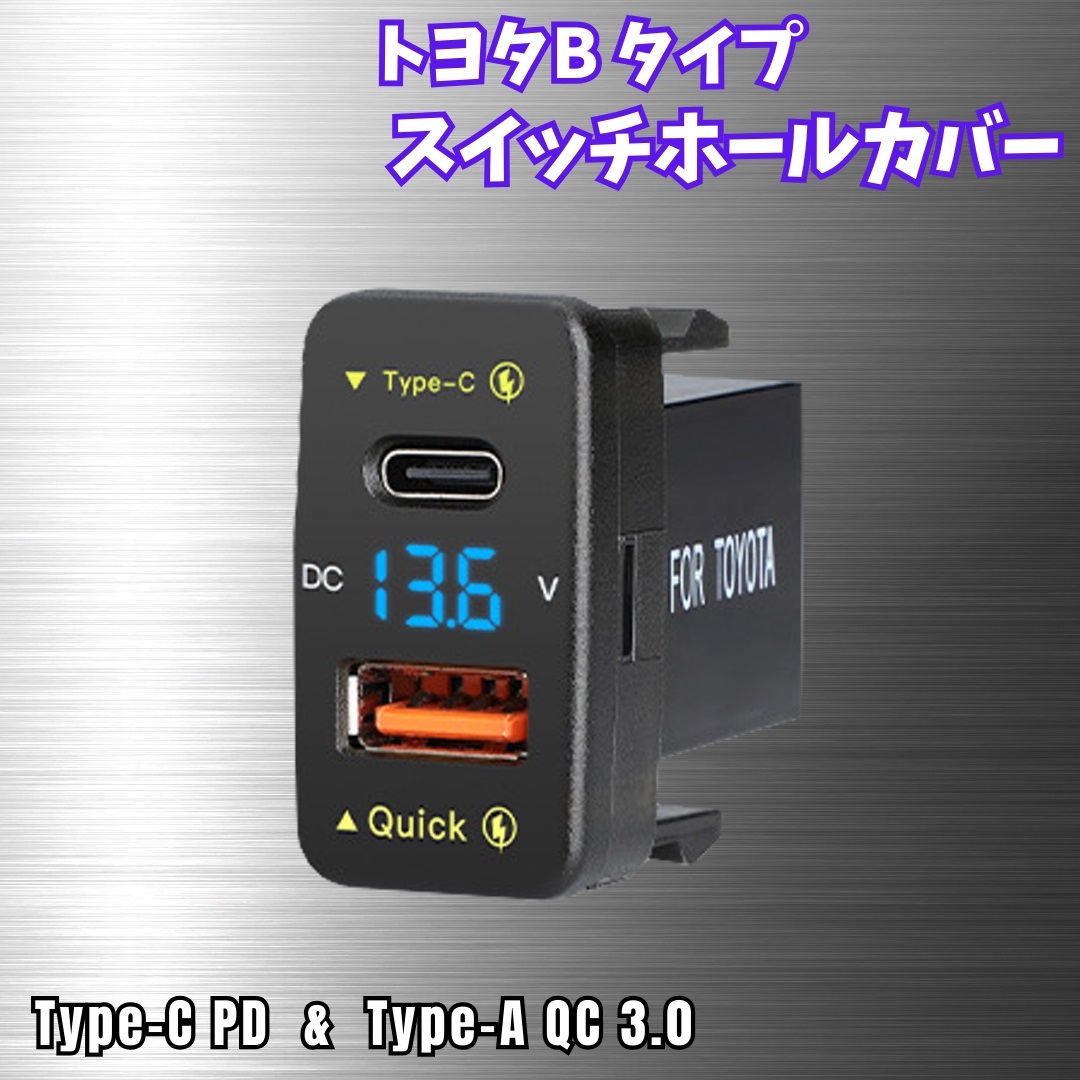 > 【トヨタB】 USBポート スイッチホールカバー / TypeC PD TypeA QC ポート / ノア 60系 ハイエース 200系 プリウス 20系 等 / 急速充電