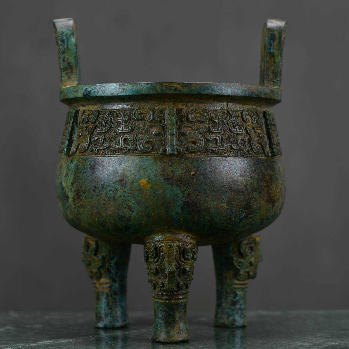 > ◆珍蔵◆中国古美術 西周時期 古銅製 青銅器 銘文 獸面三足鼎 蟠龍碗 細密細工造 置物 擺件 古賞物 骨董品 時代物 A17