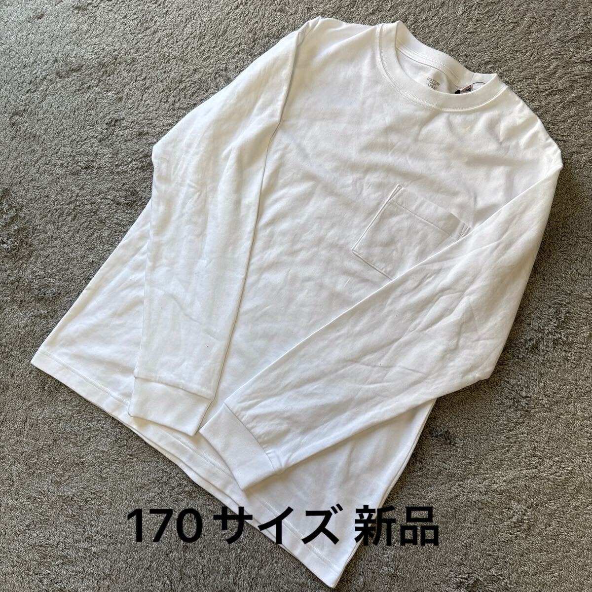 - 襟袖リブポケット付き長袖Tシャツ白170★ゆうパケット配送可能★新品38