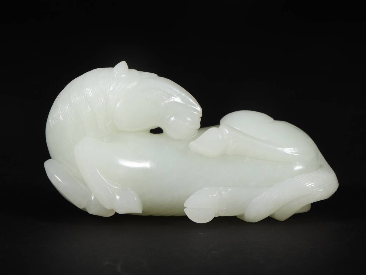 - ▽鴻▽ 清朝時代 和田玉 白玉彫 馬上翻身彫り件 時代物 中国古美術 骨董品