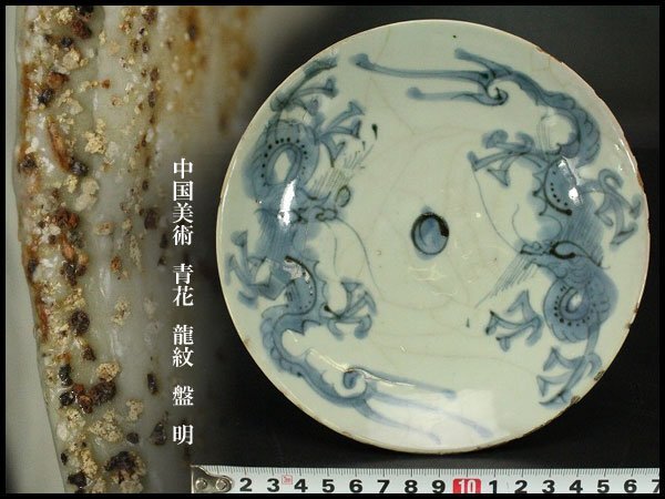 - 【銀閣】中国美術 青花 龍紋 盤 φ17.5cm 明 旧家蔵出 送料無料(YC188)