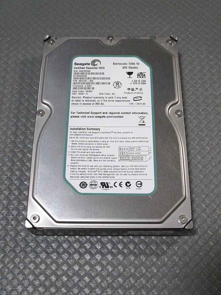 - 3.5インチHDD(IDE) 「Seagate ST3250820A」【中古,250GB,CrystalDiskInfoでの診断『注意』,送料410円】