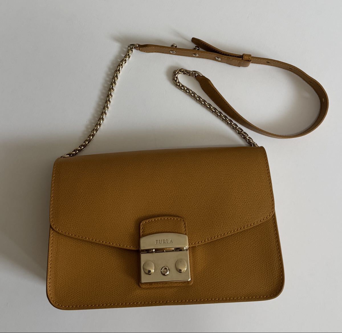 > FURLA フルラ ショルダーバッグ 本革 レザー 美品 マスタード 鞄 かばん カバン
