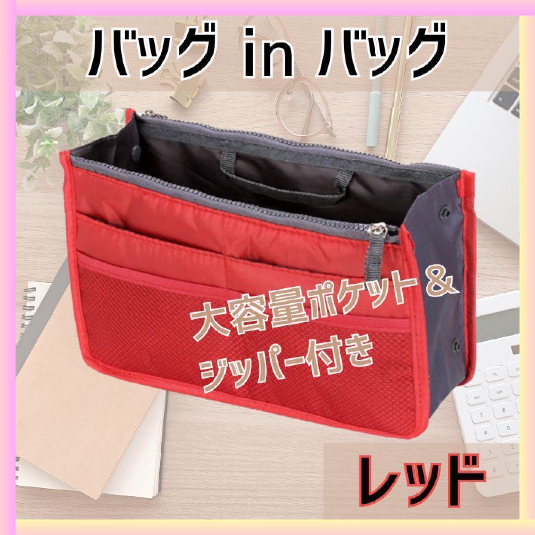 - バッグインバッグ バックインバック 収納 軽量 大容量 旅行 カバン レッド
