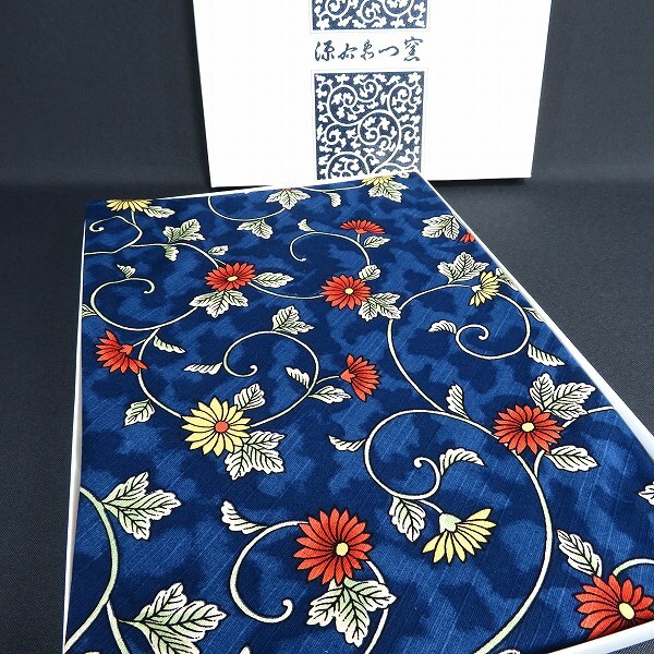 - #ae 源右衛門釜 さんび 風呂敷 紺 総柄 綿シャンタン マルチクロス テーブルクロス 箱付き 未使用 [963005] k01