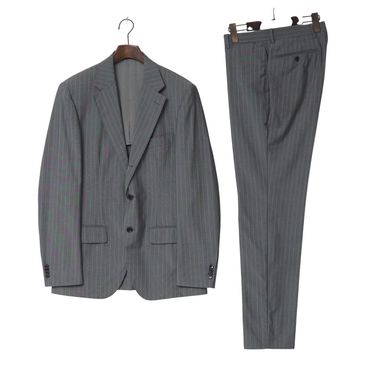 > TJ5466//カノニコ生地*エディフィス/EDIFICE*メンズ48/段返り3Bストライプスーツ/セットアップ/ジャケット+スラックス/グレー