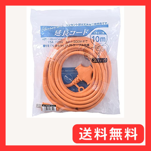 - 山善(YAMAZEN) 延長コード 10m 3口 15A 125V 1500W オレンジ ソフトケーブル 延長ケーブル