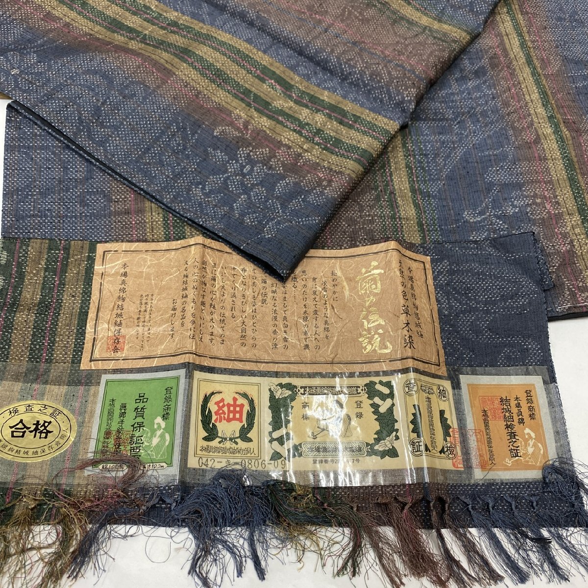 ご入札前に商品説明欄下部にある「ご入札前の注意事項」を必ずご確認ください。品のある縦縞が描かれた本場真綿絢結城紬でございます。未使用品で軽いシワ、衿裏にホック跡はございますが状態は良いです。〓ご入札前の注意事項〓