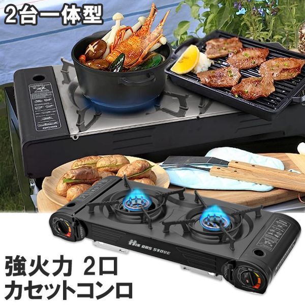 > ★送料無料・30日間保証付き★新型カセットストーブ カセットコンロ 耐荷重30kg 強火力2.5kW×2 防風 ガスボンベ式 2連 アウトドア