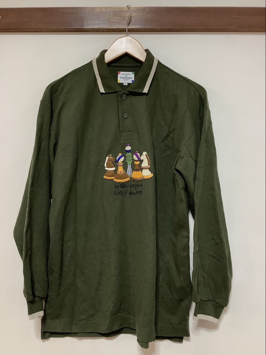 > し1768 Castelbajac Sport カステルバジャックスポーツ 長袖ポロシャツ 3 オリーブ チェスの駒 刺繍 襟ライン