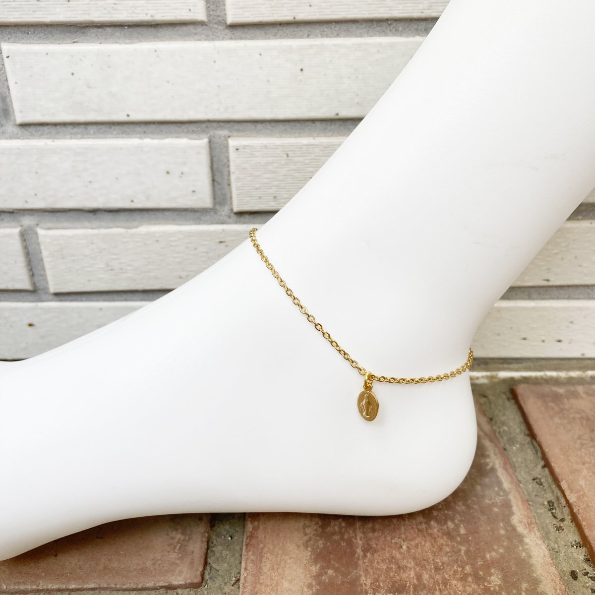 - メダイチャーム付き ステンレスアンクレット平小豆 ゴールドチェーン幅2mm 28cm(24cm+4cmアジャスター) GN70