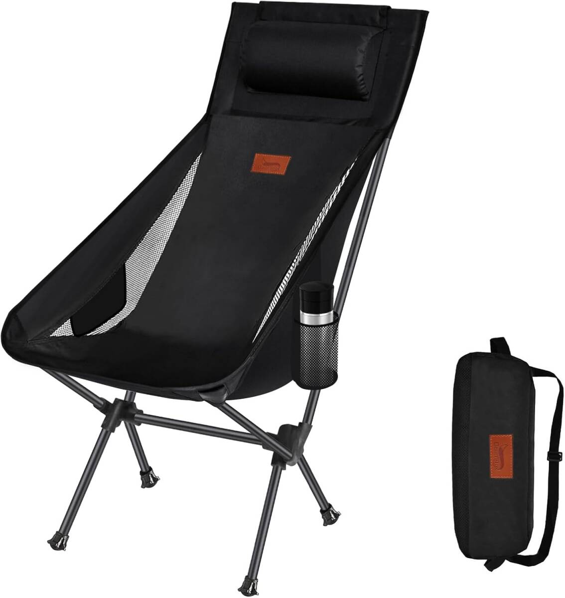 > ブラック DesertFox アウトドアチェア 折りたたみ 枕付き 超軽量 【独自開発のカップホルダー】 【耐荷重150kg】 キ