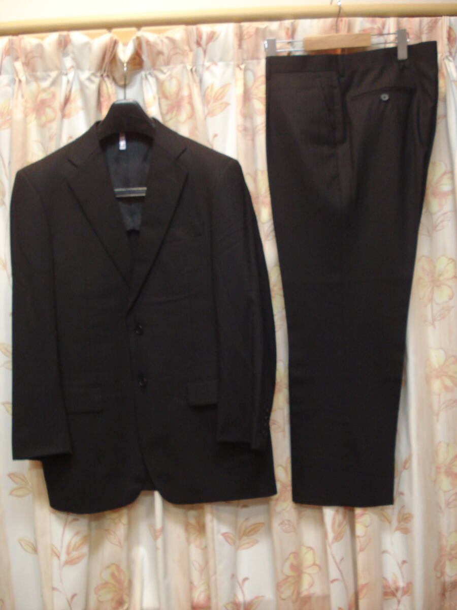 - 送料無料!クリーニング済!美品!春夏秋もの!AB5サイズ!ウェスト91cm!黒色薄い同系統色ストライプ柄入!ブラックシングルスーツ!