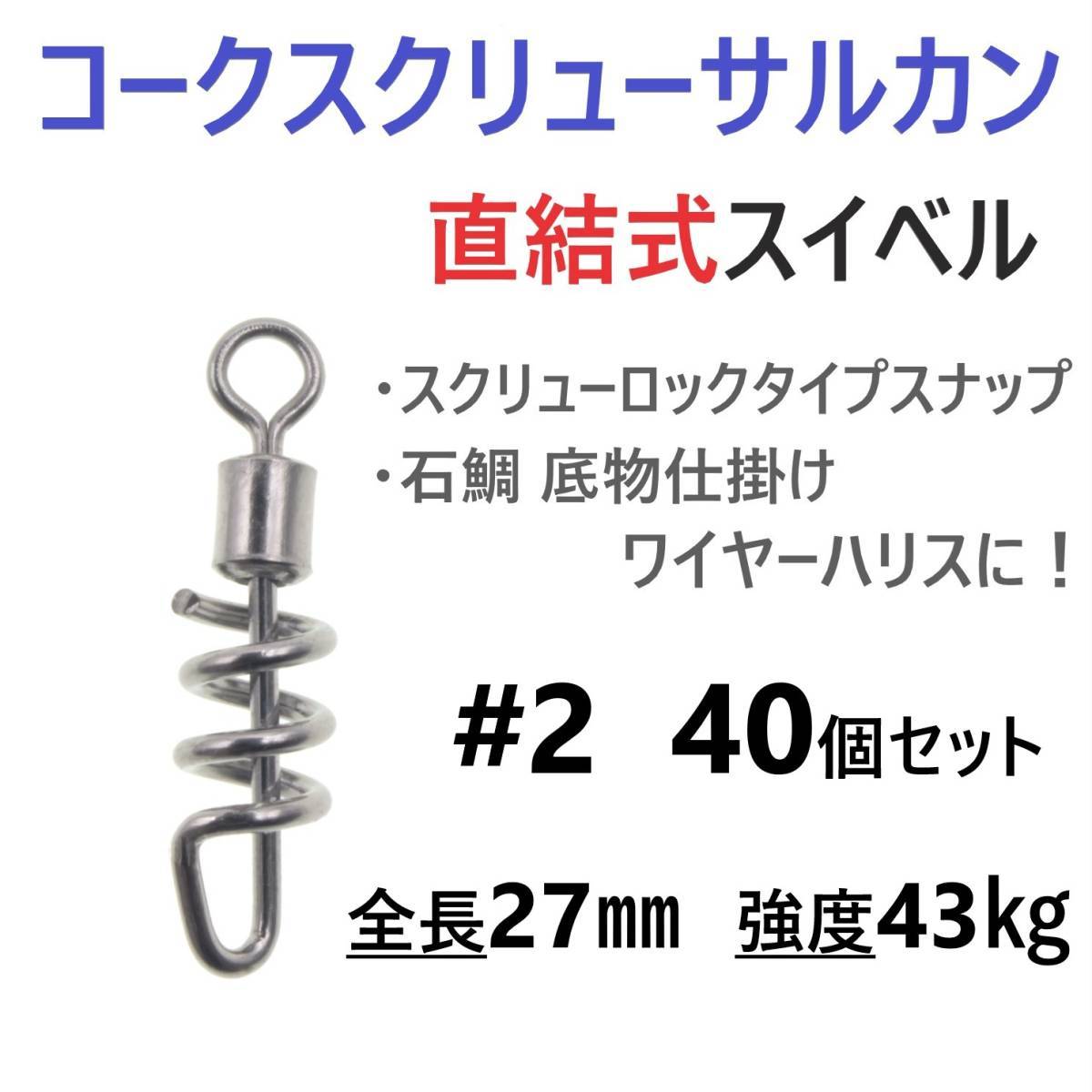> 【送料180円】コークスクリューサルカン #2 40個セット 直結式 スイベル スクリューロック スナップ ラセンサルカン 石鯛 底物仕掛けに!