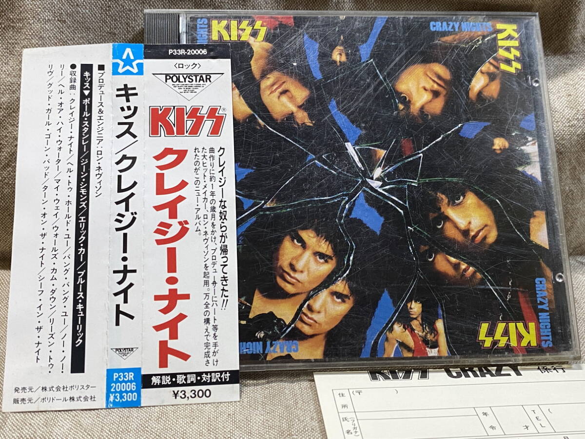 > KISS - CRAZY NIGHTS P33R-20006 国内初版 日本盤 税表記なし3300円盤 帯付 アンケートはがき付 廃盤 レア盤
