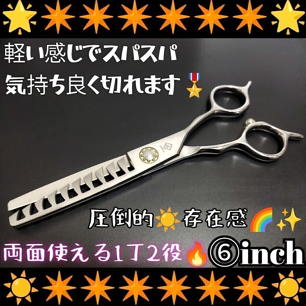 > スパスパ快適に切れる美容師、理容師プロ用セニングシザーブレンダーブレンディングシザー両面使える1丁2役☆トリマートリミングペットも可