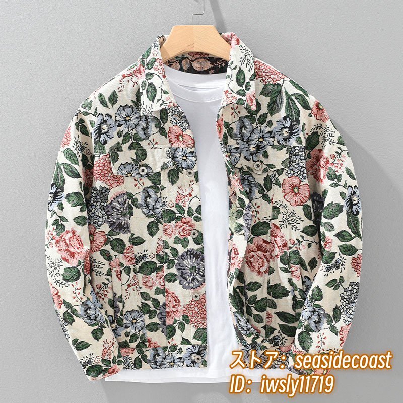 > 極美品*シャツジャケット 長袖シャツ メンズ デニムジャケット 花柄 総柄 デニムシャツ ジャンバー 紳士服 春秋 ヴィンテージ アウター XL