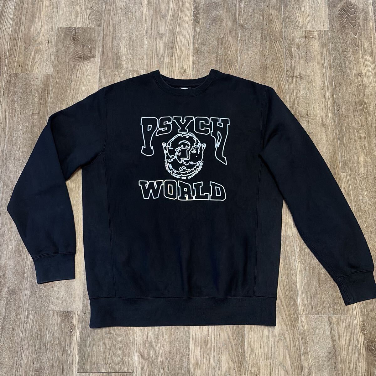 - PSYCHWORLD USA トレーナー 裏起毛 L 黒 ブラック ロゴ スウェット メンズ サイコワールド レア ストリート 完売 ハイブランド