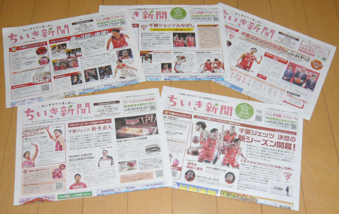 - 5種セット◆ちいき新聞☆千葉ジェッツ☆渡邊雄太・富樫勇樹・原☆バスケットボール・Bリーグ