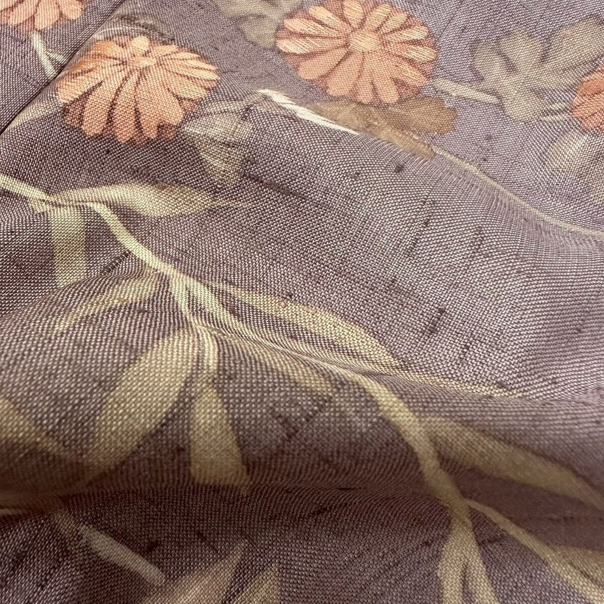 > 生紬 単衣 裄66.5 上品な染め 一つ紋 付下げ 紬 正絹 着物 W-4989