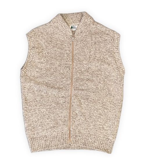 - 80's 90's 米国製 REI アールイーアイ ニット ベスト フルジップ ウール85 ナイロン15 ベージュミックス L [la-1448]