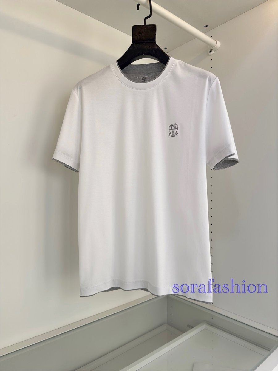 > BRUNELLO CUCINELLI(ブルネロ クチネリ) メンズT-シャツ 半袖 クルーネック ホワイト 2XLサイズ トップス カットソー 綿 丸首 刺繍ロゴ
