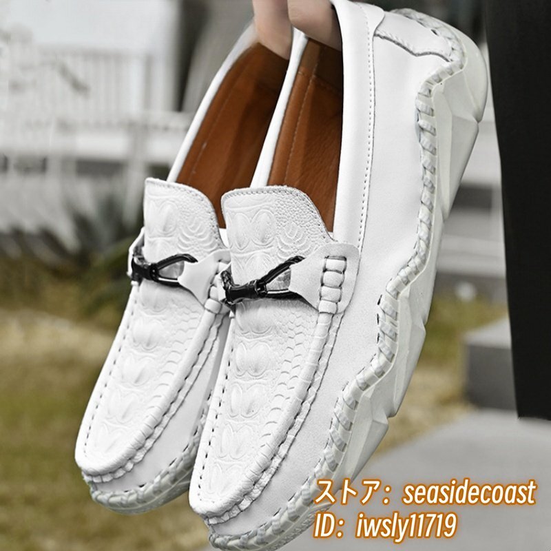 - 超美品★本革 ローファー スリッポン 新品 メンズ レザーシューズ 牛革 ビジネスシューズ ドライビングシューズ 紳士靴 ホワイト 26.0cm
