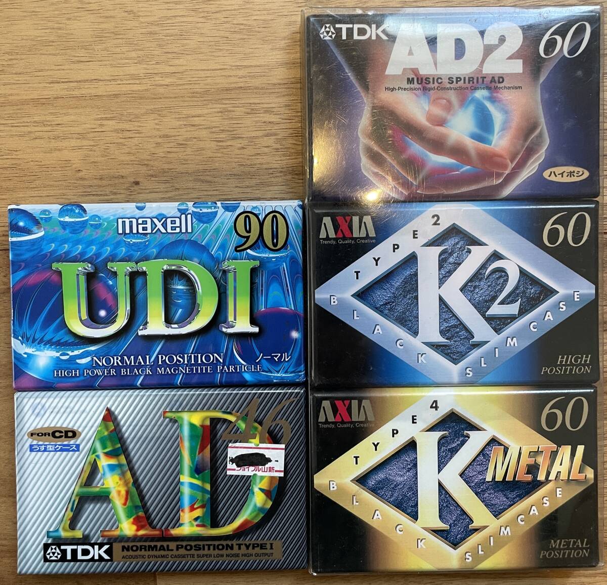 - 未開封品/TDK AD46 ノーマル・maxell UDI 90 ノーマル・TDK AD2-60 ハイポジ・AXIA K2-60 ハイポジ・AXIA K metal-60 5本組 カセットテープ