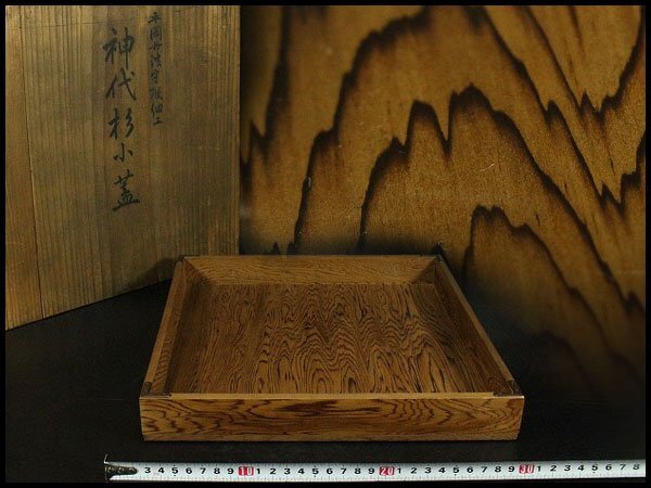 - 【金閣】神代杉 四方 盆 煎茶盆 銘木 希少品 旧家蔵出 送料無料(A406)