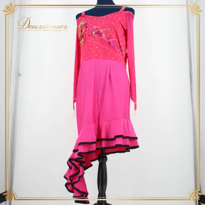 - 社交ダンス 衣装 ラテン ラテンドレス ドレス ワンピース パーティ衣装 女性用 レディース オールシーズン マゼンダピンク系