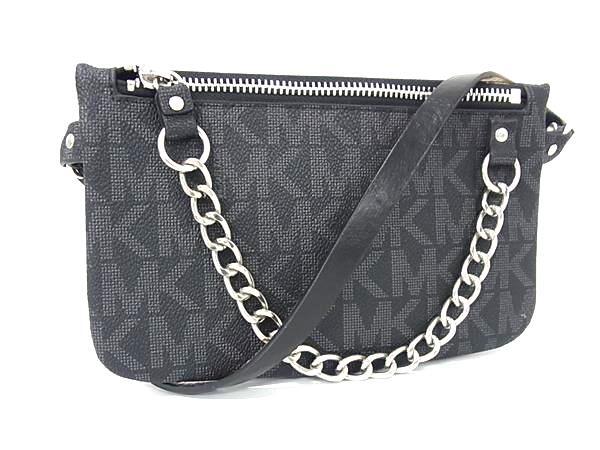 > ■美品■ MICHAEL KORS マイケルコース MK柄 PVC×レザー チェーン ウエストポーチ ショルダーバッグ 肩掛け ダークグレー系 DH6932