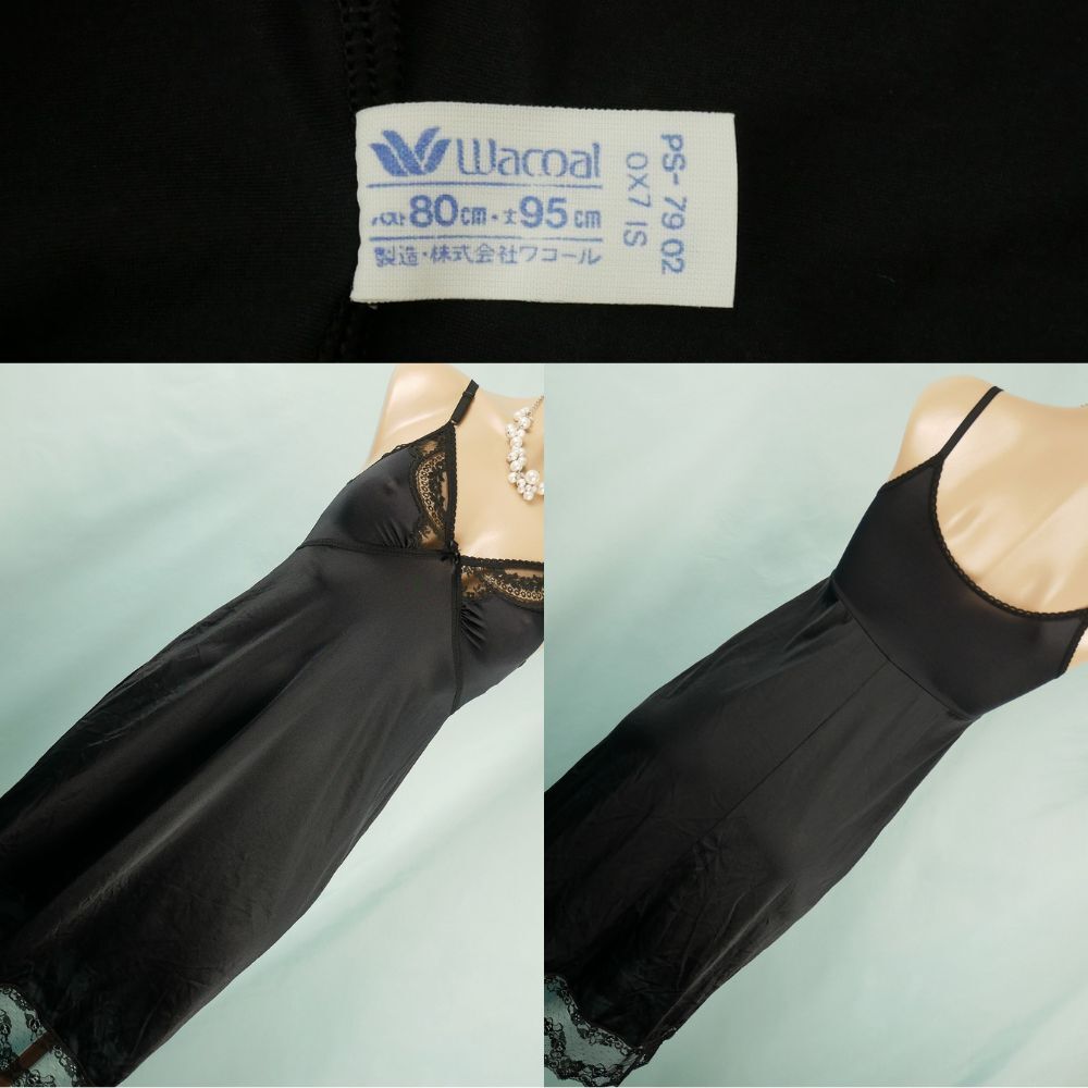 - 5915 ワコール 小花柄レース スリップ M80-95 ブラック