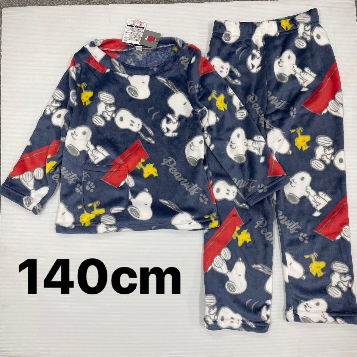 - 新品63454 スヌーピー140cm ネイビー ジュニアフリース丸首長袖フランネルパジャマ かぶり ルームウェアあったか素材男女兼用