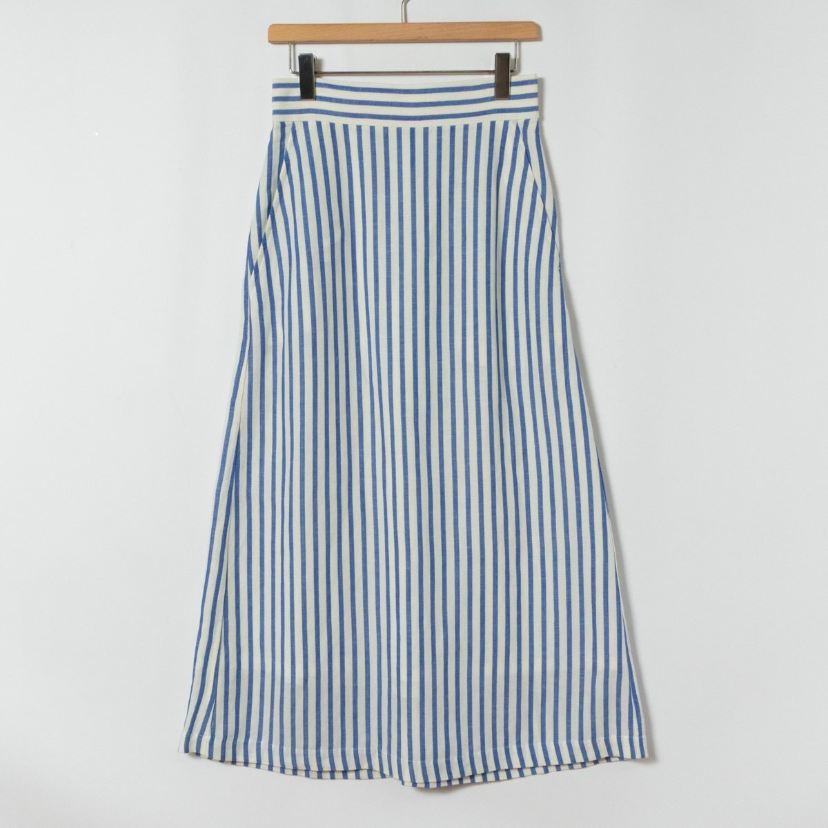 > 49AV JUNKO SHIMADA フォーティナインアベニュージュンコシマダ ストライプ リネンAラインスカート 38 M ブルー ホワイト 麻 レーヨン 春夏