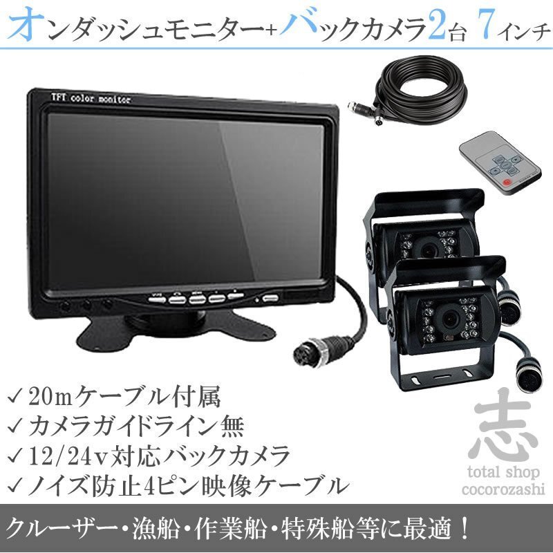 - 格安★船 ボート 12/24V バックカメラ 2台&7インチ液晶&ノイズ防止 船 エンジンルームにも最適 後方確認カメラ 2台目は予備に! 18ヶ月保証
