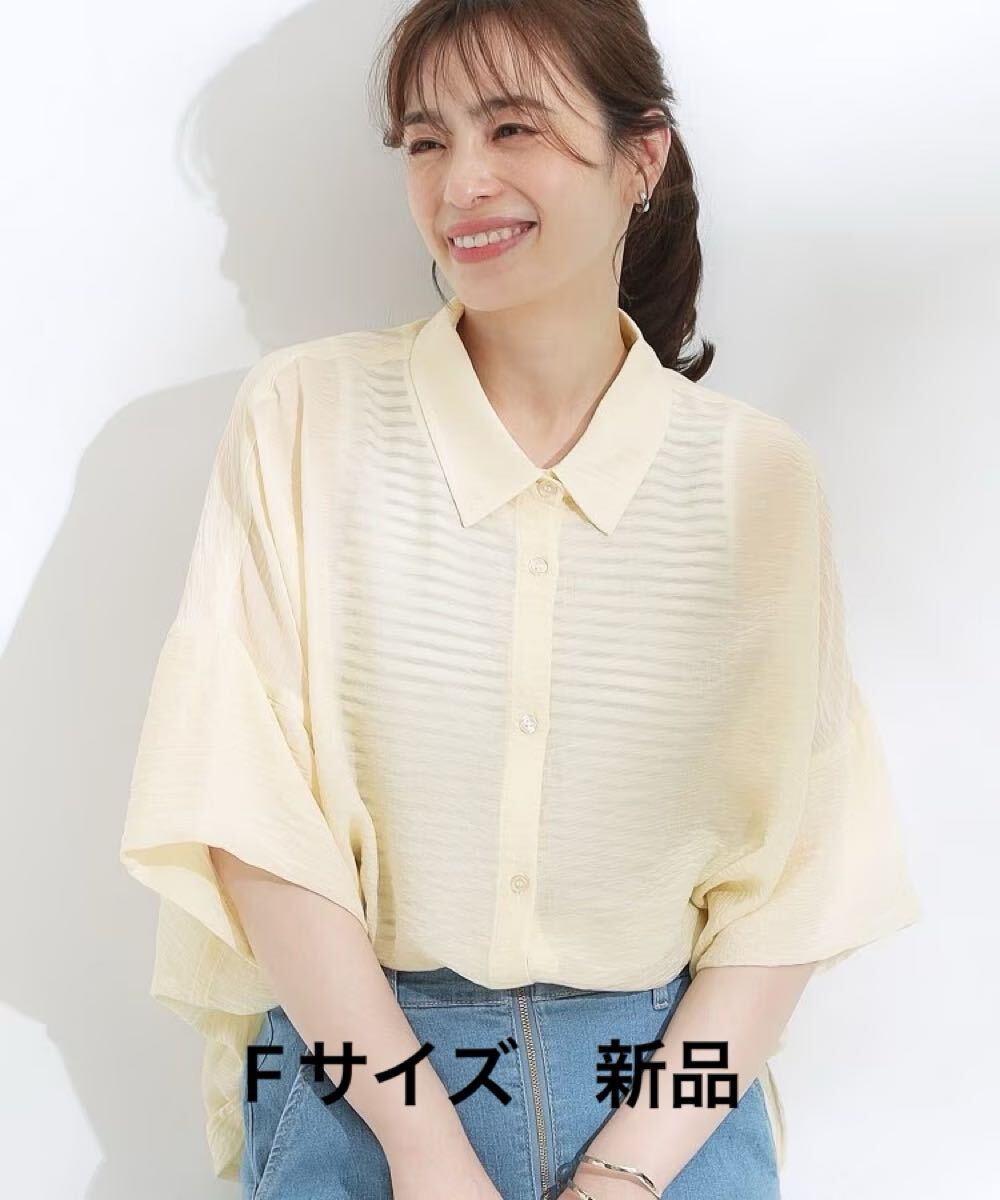- シューラルー ゆるっと感がこなれ見え ワッシャーシアー半袖シャツライトイエローF★ゆうパケット配送可能★新品40