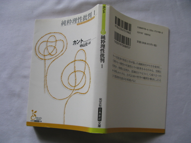 - 光文社古典新訳文庫『純粋理性批判 1』カント 平成22年 初版 光文社