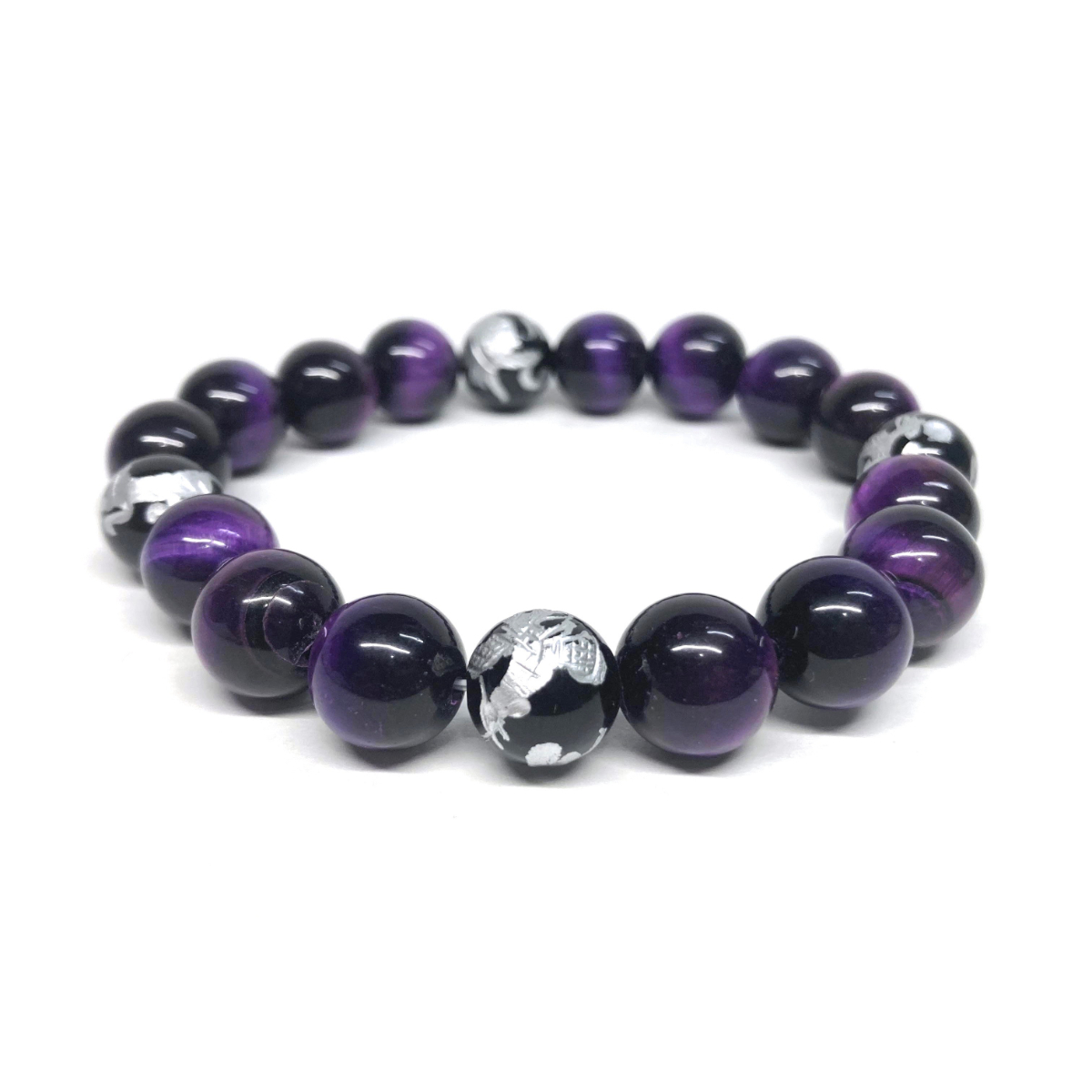 - 10mm 四神獣銀彫オニキス×パープルタイガーアイ パワーストーン ブレスレット天然石 運気上昇 開運 金運 青龍 白虎 玄武 朱雀 ☆