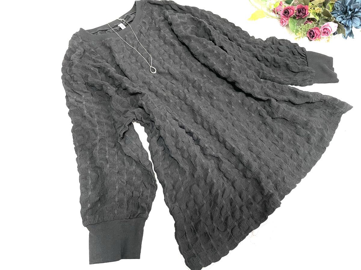 - f■4L■新品■きれいめカジュアル*ドロップショルダー*ポップコーンプルオーバーTops*ふわっとぽわん袖■黒