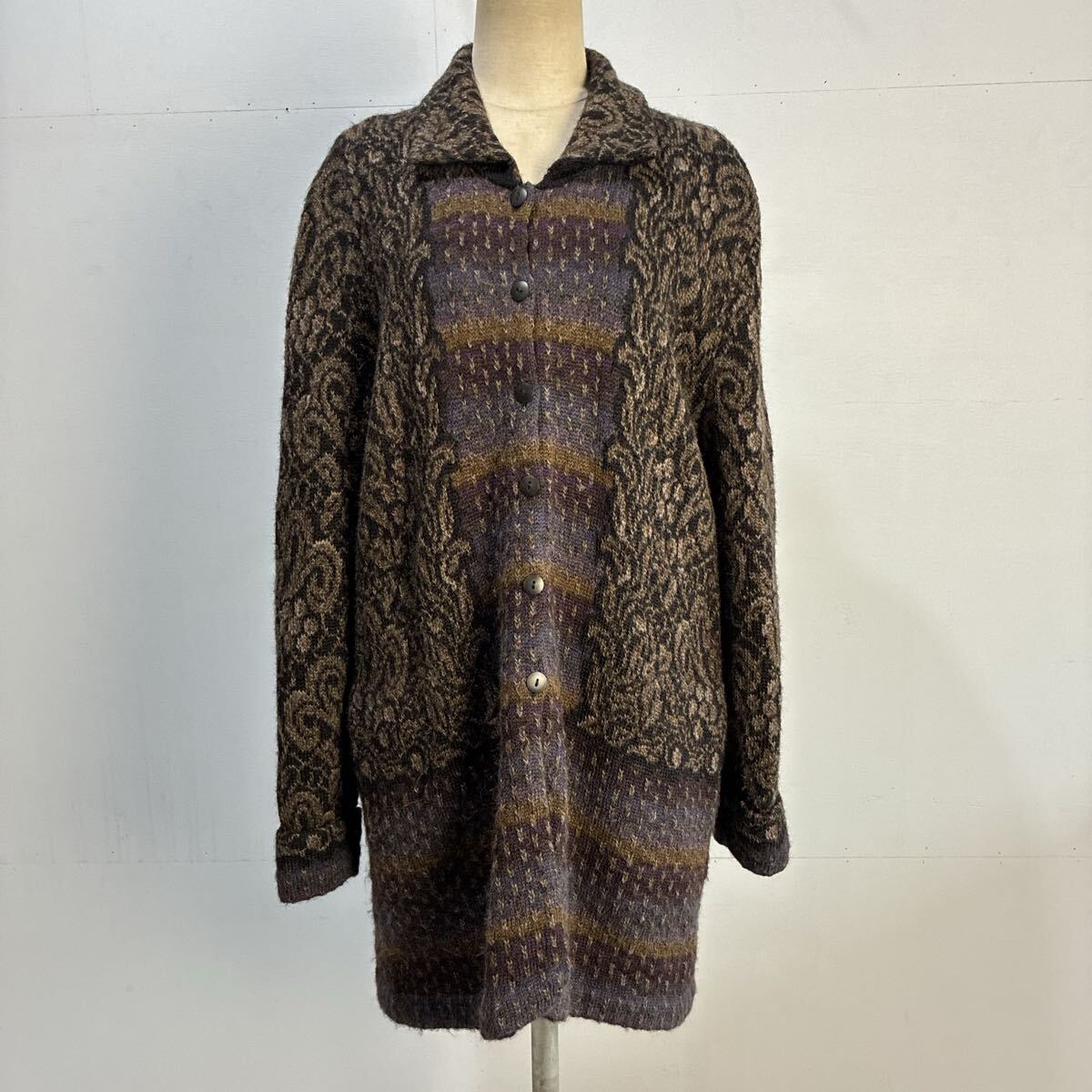 - HILLMA BOLIVIA ボリビア製 アルパカジャケット アルパカニット ニットジャケット 総柄ジャケット カーディガン【送料一律/同梱可能】W