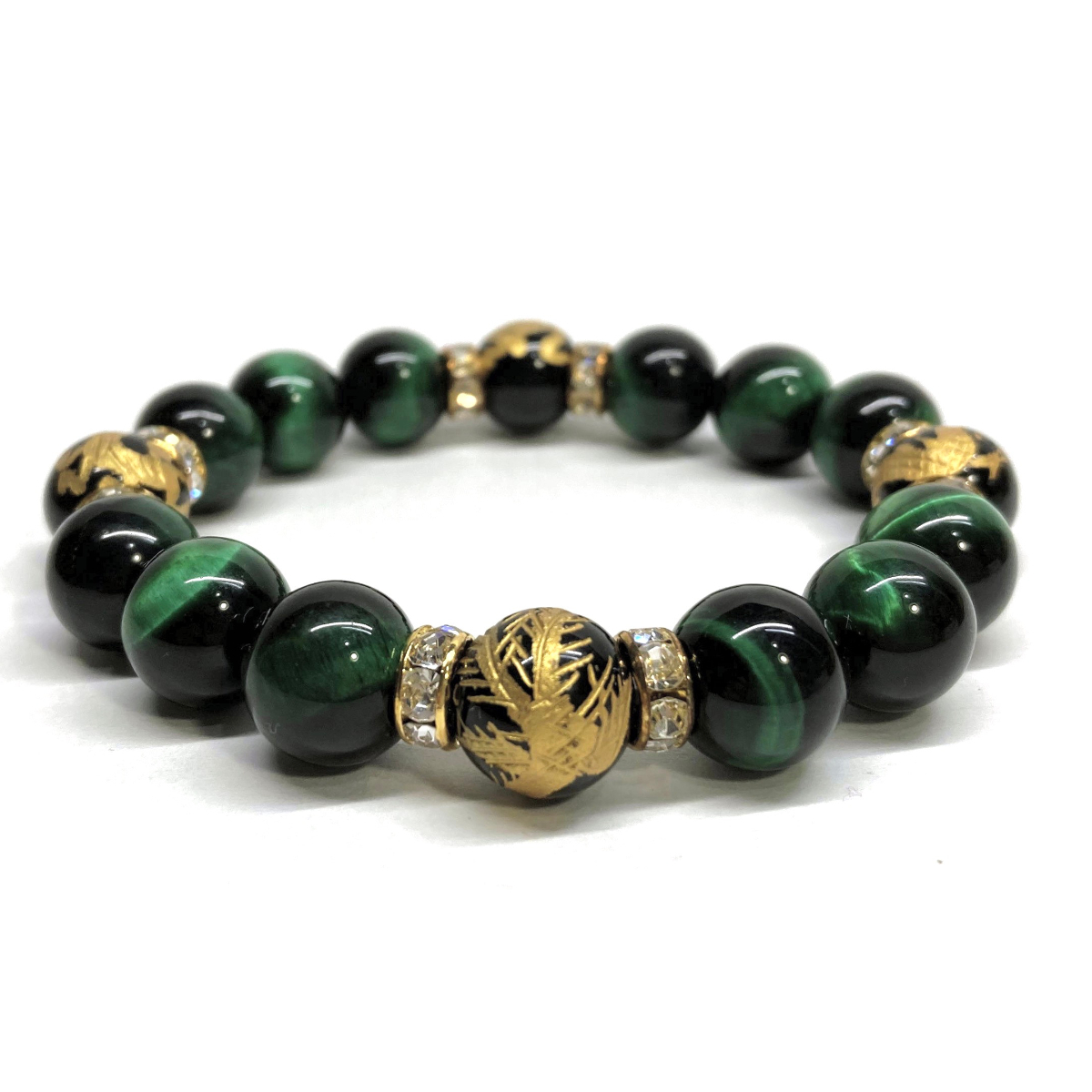 - 四神獣金彫オニキス×グリーンタイガーアイ 12mm パワーストーン ブレスレット 天然石 青龍 白虎 玄武 朱雀 運気上昇 開運 金運 お守りG