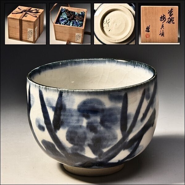 - U08721 人間国宝 近藤悠三 染付 梅 呉須 茶碗 抹茶碗 碗 茶器 茶道具 共箱 /65