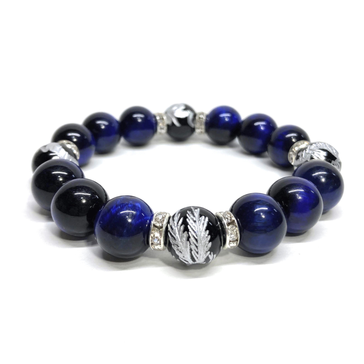 > 四神獣銀彫オニキス×ブルータイガーアイ 12mm パワーストーン ブレスレット 天然石 青龍 白虎 玄武 朱雀 運気上昇 開運 金運 お守り S