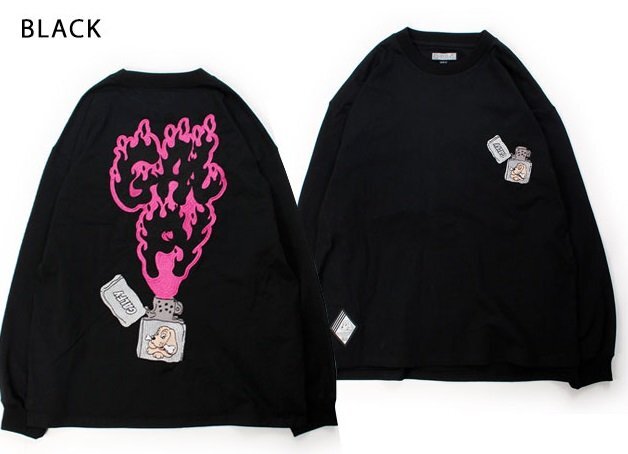 > FIREライターロングTシャツ◆GALFY ブラック Lサイズ(中型犬) 153086 ガルフィー ゆったりめ オーバーサイズ ユニセックス