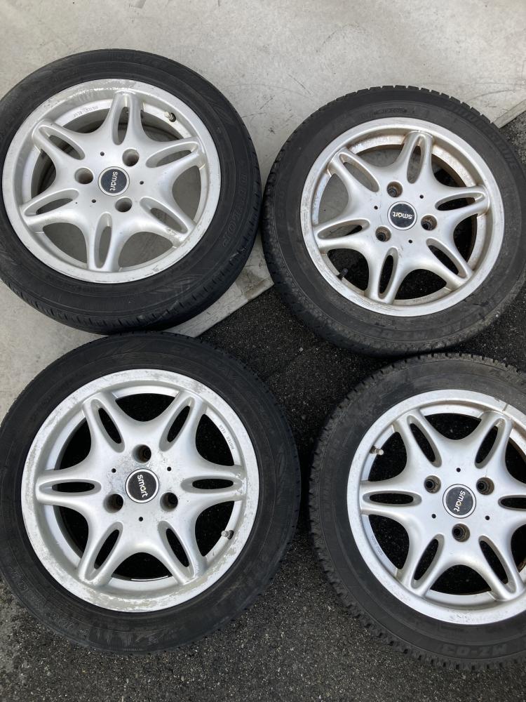 - スマート純正 リム径175/55R15(F)/145/65R15R リム幅5.5J(F)/3.5JR オフセット?(F)/20.5R PCD?(F)/?(R) ハブ径5.7(F)/5.7R