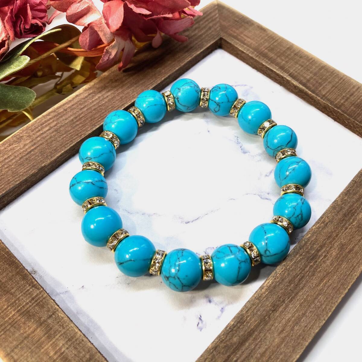 - パワーストーン ブレスレット ターコイズ 12mm ゴールド 開運 金運 浄化 数珠ブレス メンズ 男性