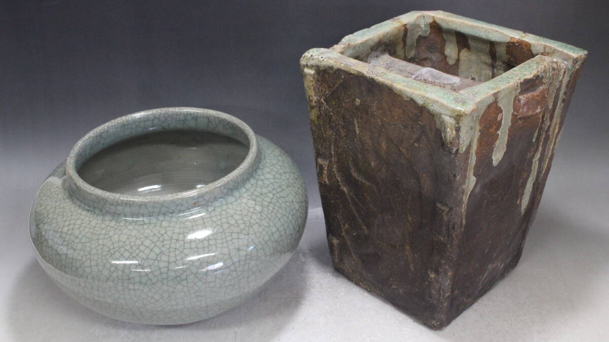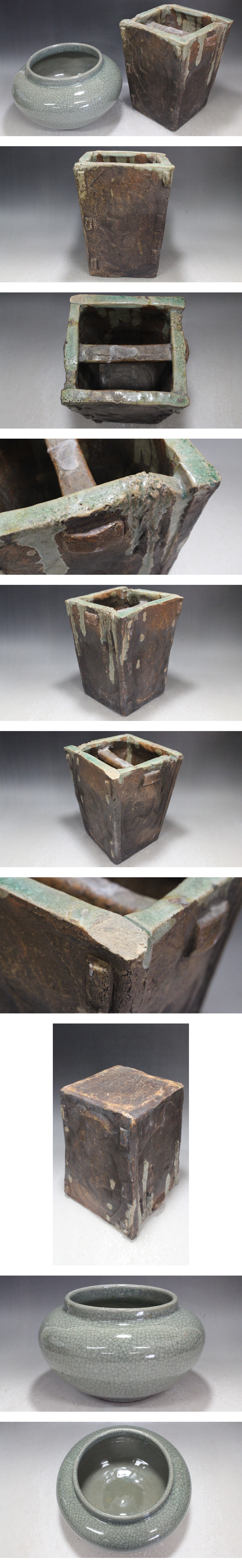 - 陶器 花器 2点セット (右3320g/左1990g) 時代物 華道花瓶 陶芸工芸品 チ32