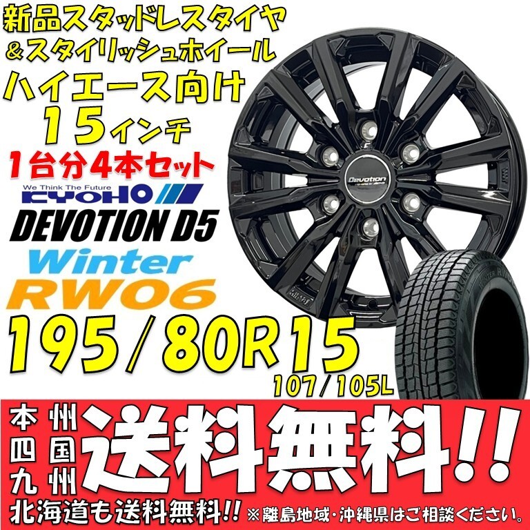 > 200系ハイエースに!195/80R15 107/105L 2025年製スタッドレスタイヤ&ブラックアルミホイール 新品4本セット 即決価格◎送料無料 6H/139.7