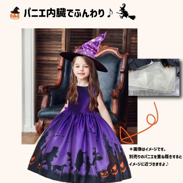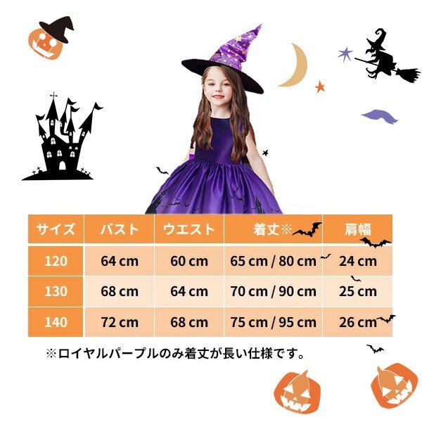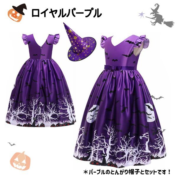 - 小さな魔女ドレス ロイヤルパープル 帽子付き/選べるサイズ パニエ付き キッズ 子供 ハロウィンコスプレ 仮装コスチューム 衣装 魔法使い